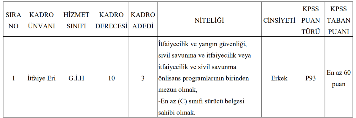 Kadro Ünvanı: İtfaiye Eri