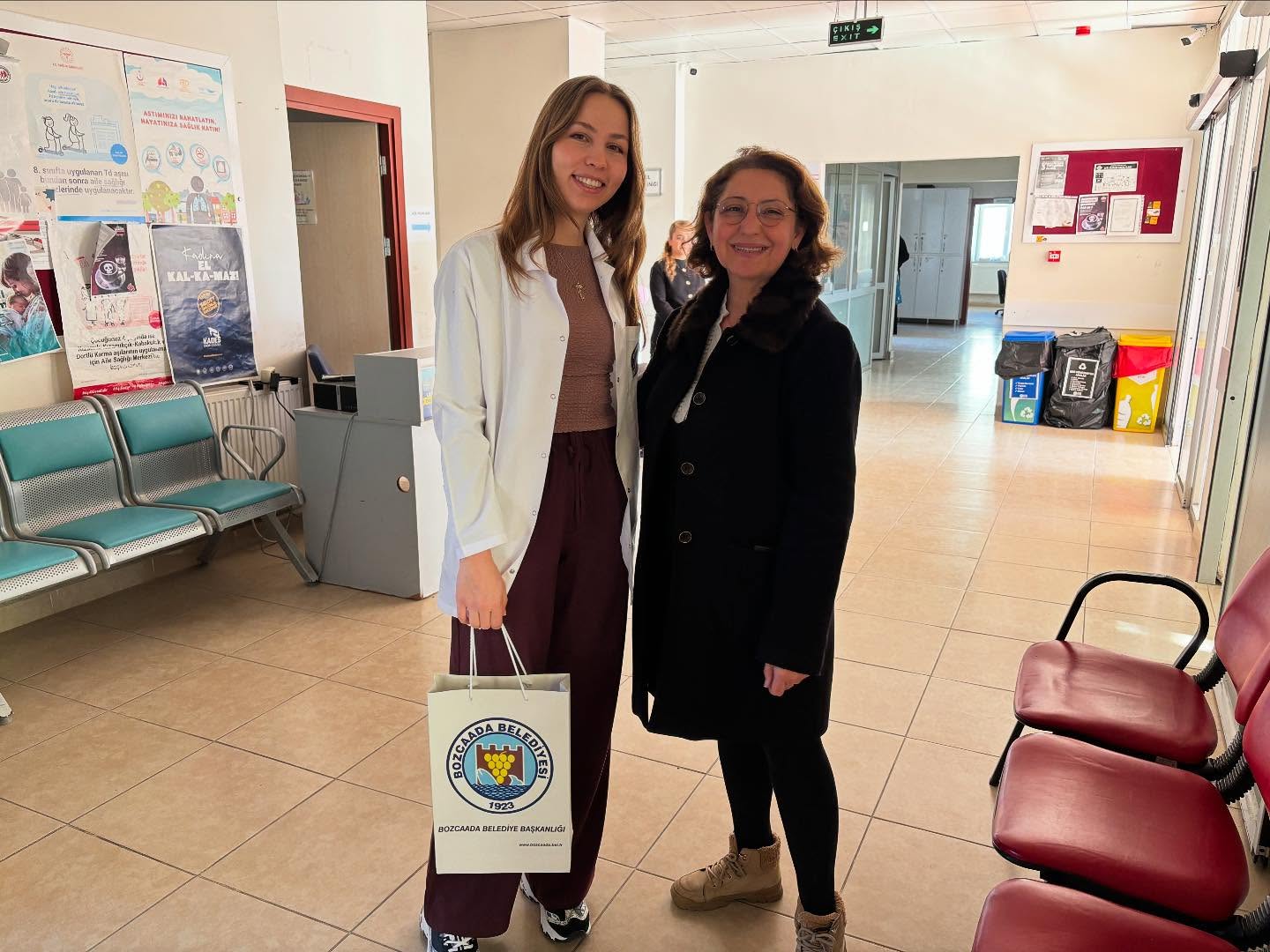 Bozcaada Belediye Başkan Yardımcısı Gülay Elbir Uslu ve belediye hemşiresi Gamze Tezcan, 14 Mart Tıp Bayramı sebebiyle Bozcaada Toplum Sağlığı Merkezi'nde görev yapan doktorlar ve sağlık çalışanlarını ziyaret etti.
