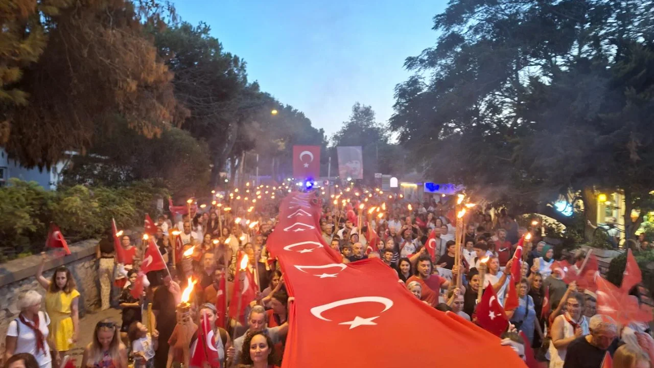 Akşam saat 20.00’de Jandarma Çeşmesi önünde toplanan Bozcaadalılar, ellerinde Türk bayrakları ve yanan meşalelerle yürüyüşe geçti. Sokaklarda marşlar söylenerek gerçekleştirilen yürüyüş, adada birlik ve beraberlik duygularını pekiştirdi. Ada sakinleri ve tatilciler ellerindeki bayraklarla korteje katılarak coşkuya ortak oldu.