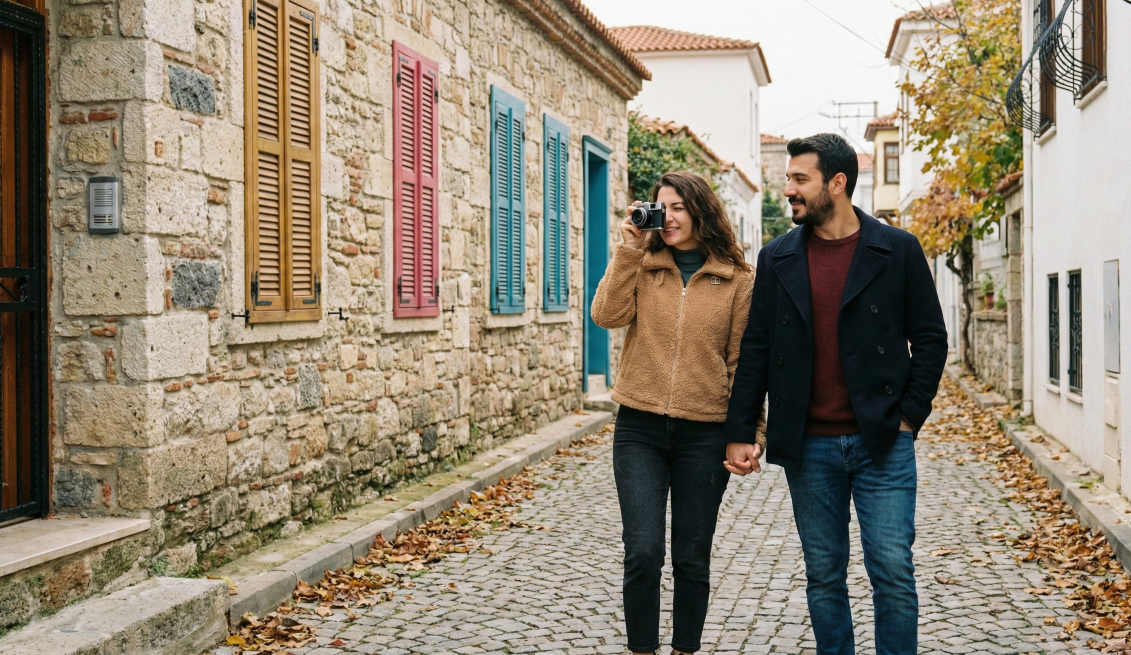 Fotoğraf makinenizi çıkarın. O mükemmel kareyi yakalamak için beklemenize gerek yok. Arka planda sadece tarihi evler ve sonbaharın sarıdan kızıla dönen renkleri var. Bol bol fotoğraf çekin. Ama en çok da anı hafızanıza kaydedin. Birbirinizin gözlerine bakın. Sessizliği paylaşın. Bazen susmak, en güzel anlaşma biçimidir adada. Sadece adımlarnızın sesi ve rüzgarın uğultusu size eşlik etsin. Rahatlayın, bütün gün sizin; hem de eksiksiz ve taze bir sonbahar rüzgarıyla.