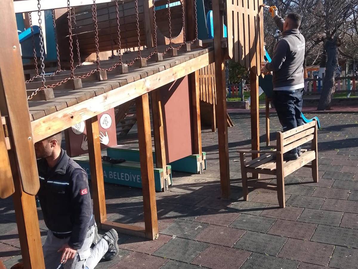 Fen İşleri Müdürlüğü ekipleri tarafından yürütülen çalışmalarda, parklardaki oyun gruplarının eksikleri giderilirken, yıpranan ekipmanlar titizlikle onarılıyor. Sadece teknik bakımla yetinmeyen belediye ekipleri, parkların çehresini değiştirmek adına boyama çalışmalarıyla her köşeyi renklendiriyor.
