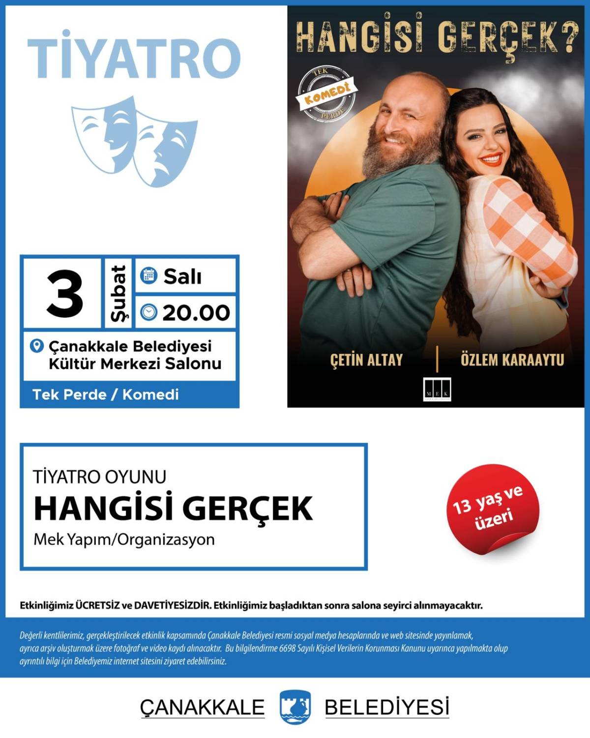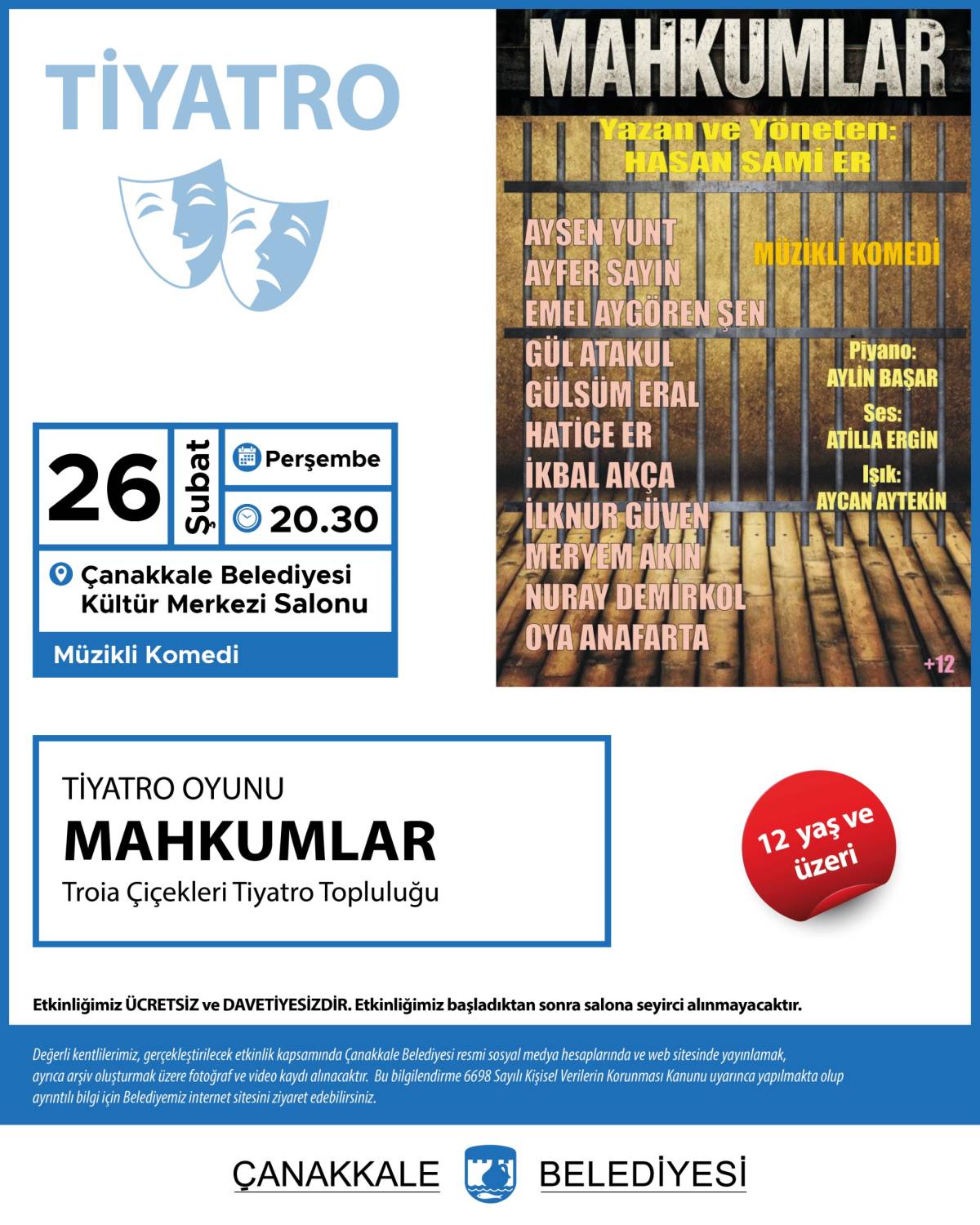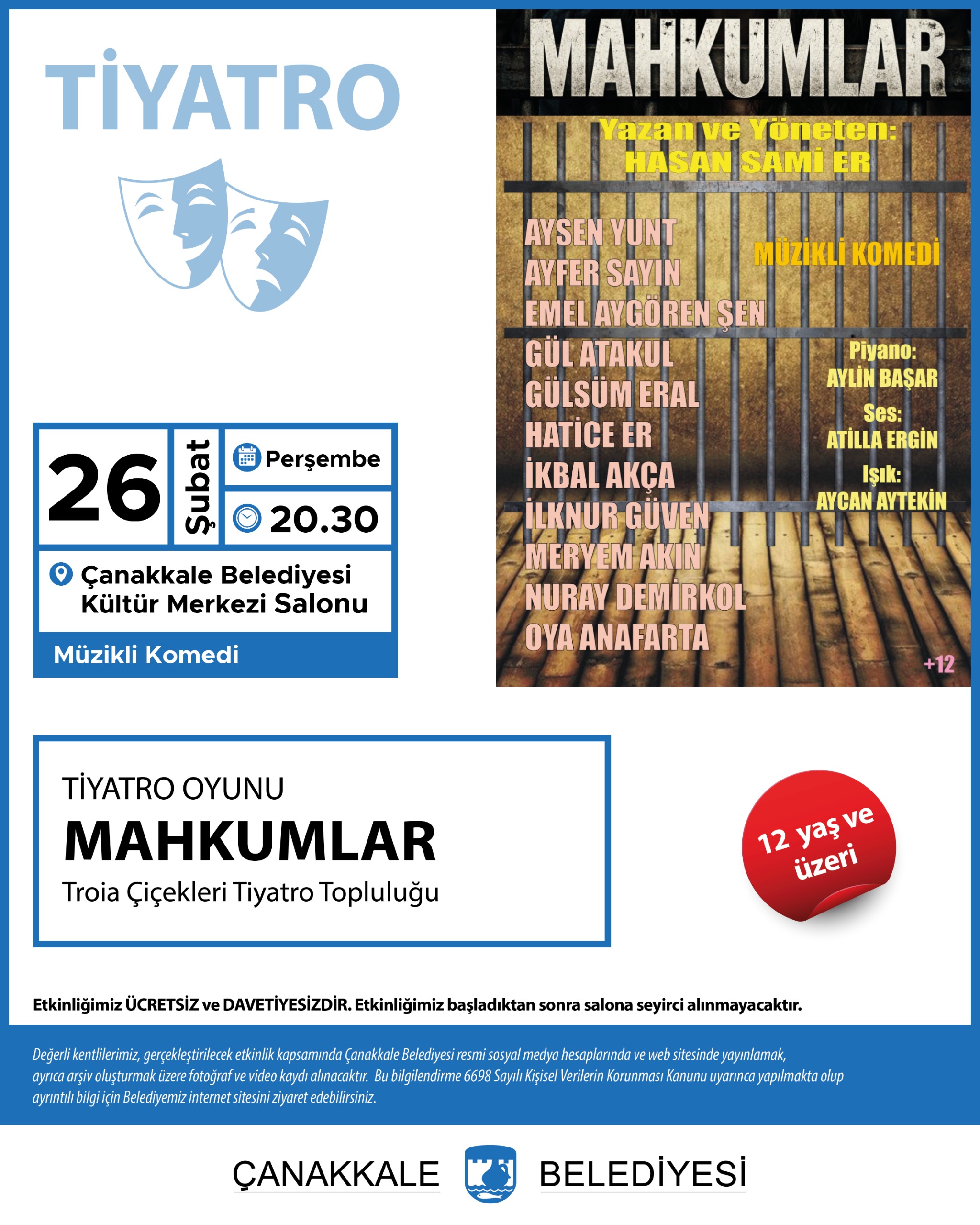 Yer: Çanakkale Belediyesi Kültür Merkezi Salonu
