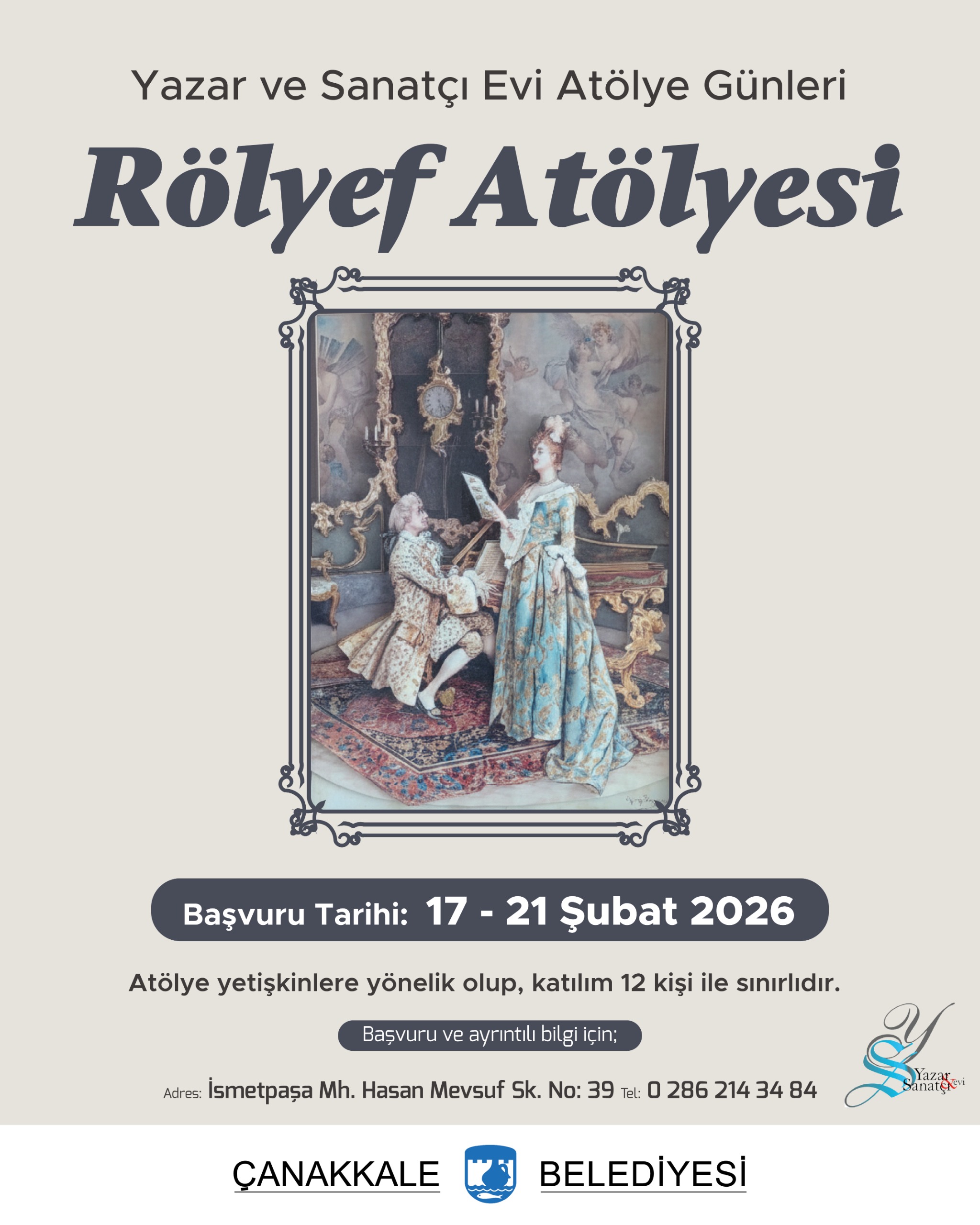 Atölye yetişkinlere yönelik olup, katılım 14 kişi ile sınırlıdır.