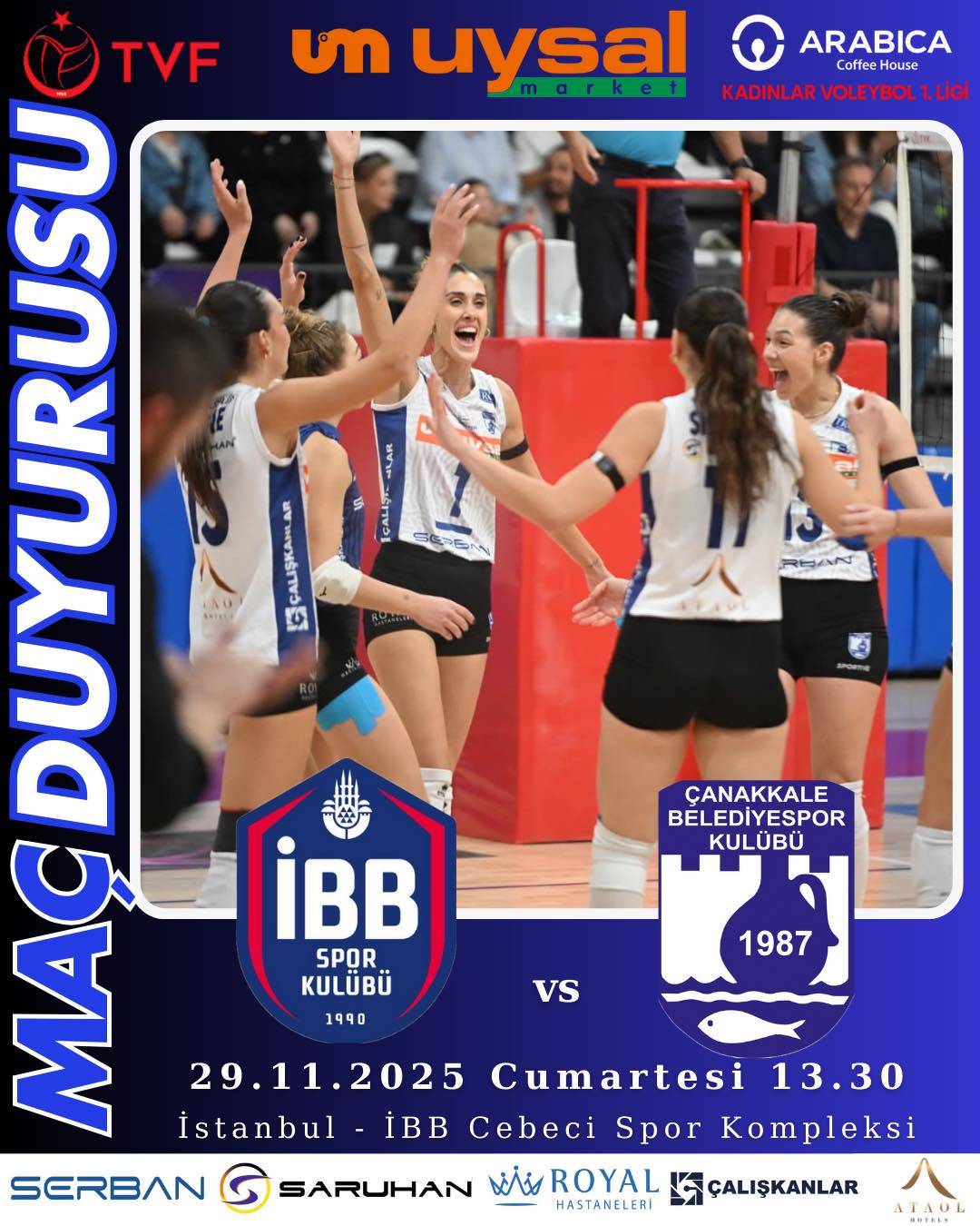 Türkiye Voleybol Federasyonu (TVF) Arabica Coffee House Kadınlar 1. Ligi’nde heyecan, 29 Kasım 2025 Cumartesi günü oynanacak İBB Spor – Çanakkale Belediyespor mücadelesiyle devam ediyor. İstanbul’daki İBB Cebeci Spor Kompleksi’nde saat 13.30’da başlayacak karşılaşma, her iki takım için kritik öneme sahip.