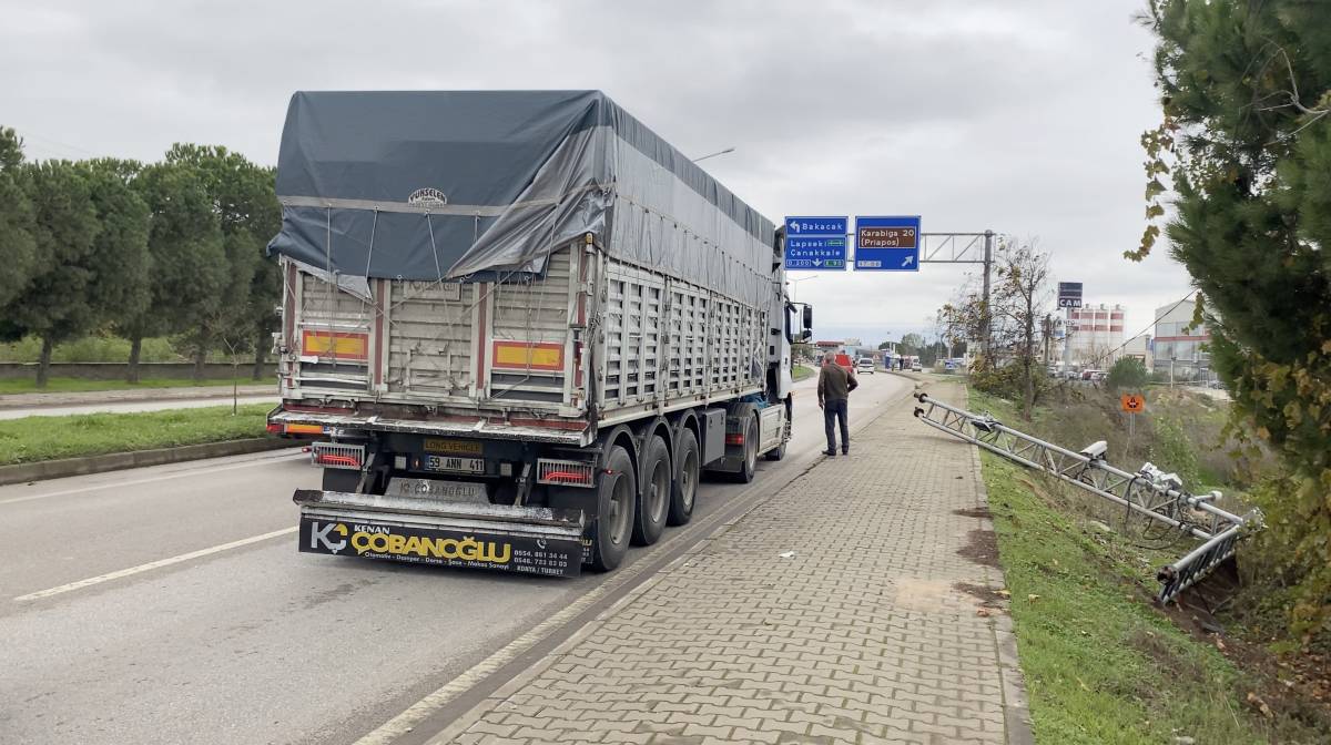 Çanakkale’de Biga istikametinde meydana gelen trafik kazasında, seyir halindeki bir tırın dorsesinin açılması sonucu Plaka Tanıma Sistemi’ne (PTS) çarpması büyük bir maddi hasara yol açtı. Çarpmanın etkisiyle PTS devrilirken, yol bir süre araç trafiğine kapandı. Polis ekipleri kazaya ilişkin inceleme başlattı.