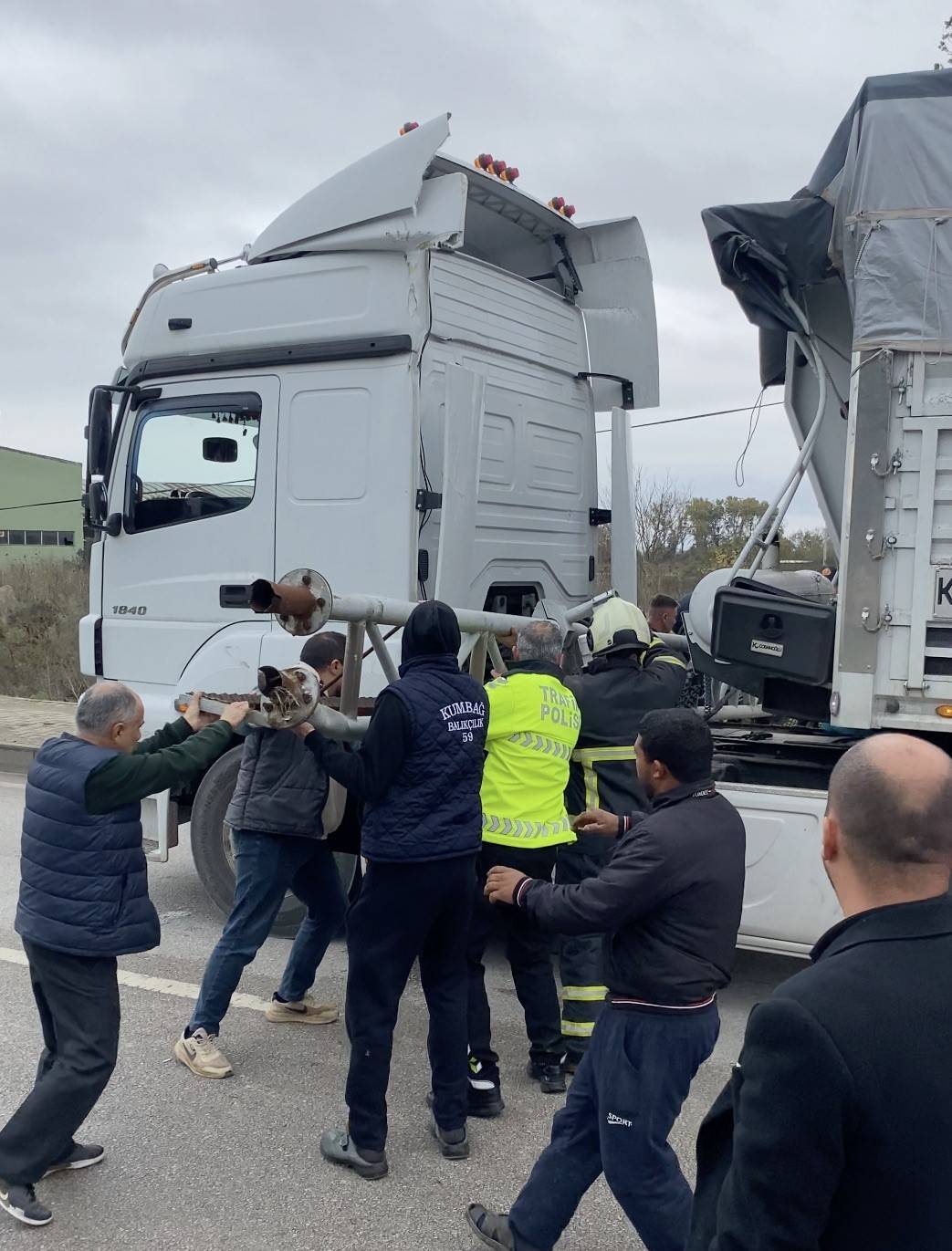 Yetkililer, olası bir ikinci kazanın önlenmesi için bölgeyi güvenlik şeridiyle çevreledi. Tırın dorsesi olay yerinden çekici yardımıyla kaldırıldı.