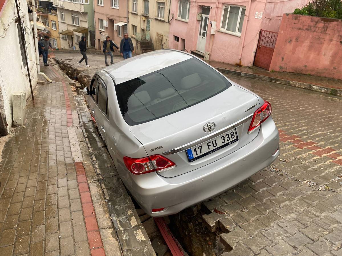 Çanakkale’nin Biga ilçesinde gece boyu devam eden yağış, altyapı çalışması yapılan bir yolda göçüğe yol açtı. Çökme sırasında yol kenarında park halinde bulunan iki otomobil göçüğün içine düşerek hasar gördü. Neyse ki olayda can kaybı ya da yaralanma yaşanmadı.