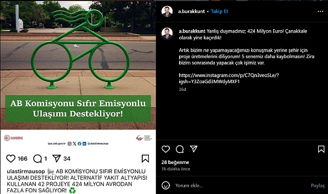 Kunt, “424 Milyon Euro! Çanakkale olarak yine kaçırdık!” şeklinde sitemde bulundu. Şehir için proje üretme çağrısında bulunan Kunt, “Artık bizim ne yapamayacağımızı konuşmak yerine şehir için proje üretmelerini diliyorum! 5 senemiz daha kaybolmasın! Zira bizim sonrasında yapacak çok işimiz var” dedi.