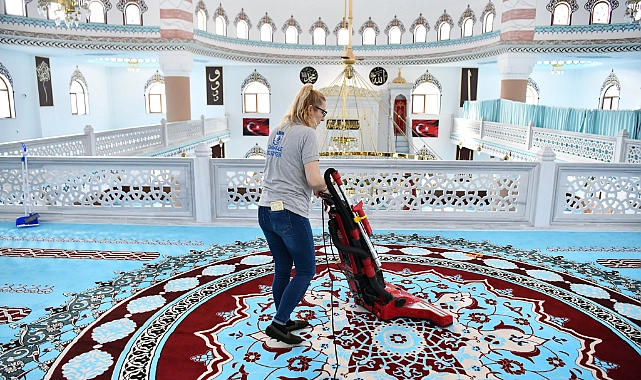 Belediye Destek Hizmetleri Müdürlüğü ekipleri tarafından gerçekleştirilen temizlik çalışmaları kapsamında camiler titizlikle temizlenerek dezenfekte ediliyor. Ramazan ayı boyunca devam edecek çalışmalarla, ibadethanelerin hijyenik koşullarda vatandaşlara hizmet vermesi sağlanıyor.