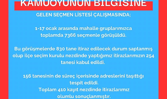 156 tanesinin de süreç içerisinde adreslerini taşıttığı tespit edildi. Toplamda 410 kayıt nezdinde itirazlarımız olumlu sonuçlanmıştır” ifadeleri yer aldı.