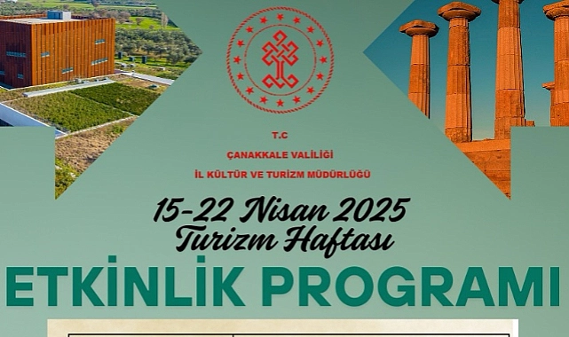 15-22 Nisan tarihleri arasında kutlanan Turizm Haftası, Çanakkale’de dolu dolu bir programla karşılanıyor. Çanakkale Kültür ve Turizm Müdürlüğü tarafından hazırlanan etkinlikler kapsamında kentte bir hafta boyunca tarihî, kültürel ve doğal değerlerin ön plana çıkarıldığı çeşitli etkinlikler düzenlenecek.