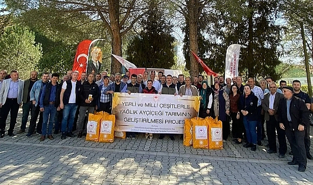 Çanakkale'de TAKE Projesi kapsamında yerli ayçiçeği tohumları üreticilere dağıtıldı.