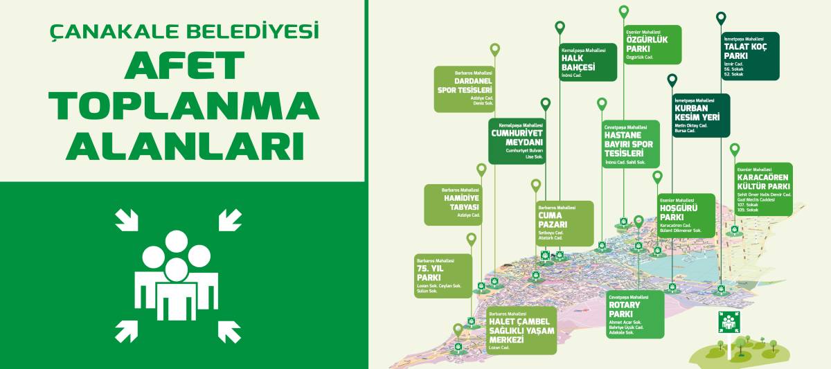 Afet sonrası ilk şoku atlattıktan sonra, ikincil risklerden korunmak adına belirlenen açık alanlara gitmek hayati önem taşıyor. Çanakkale Belediyesi tarafından güncellenen listeye göre güvenli bölgeler: