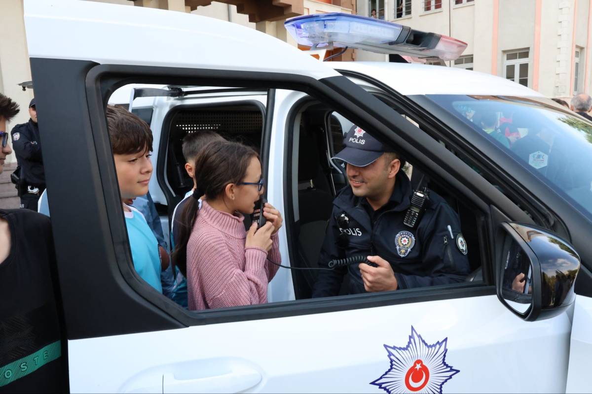 Ekipler ayrıca çocuklara polis üniformalarını tanıtarak, öğrencilerin merak ettiği soruları yanıtladı.