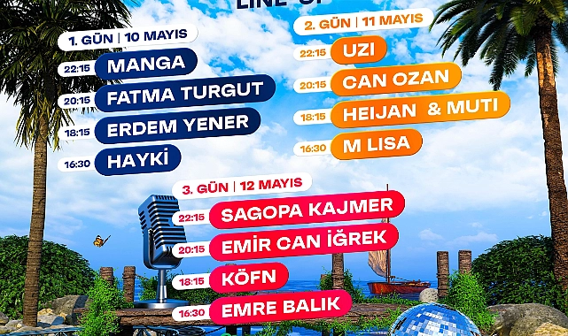 Festival programına göre; ilk gün festivale Manga grubu damga vuracak. 16:30’da Hayki ile başlayacak konserler Erdem Yener, Fatma Turgut ve Manga ile devam edecek. Festivalin 2. Gününde; 16:30’da M Lisa sahne alacak ve ardından Heijan & Muti, Can Ozan ve son olarak 22:15’te Uzi sahne alacak.
