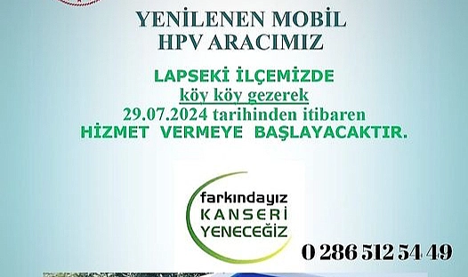 Çanakkale İl Sağlık Müdürlüğü, yenilenen mobil HPV aracını 29 Temmuz 2024'ten itibaren Lapseki ilçesinde köy köy gezerek hizmete sunacak.