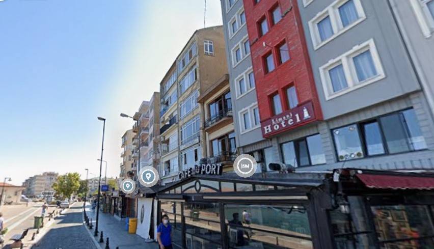 Paylaşılan fotoğrafta da görüldüğü üzere; kırmızı ve gri tonlarıyla liman manzarasının ayrılmaz bir parçası olan yapı, konumu itibarıyla Çanakkale’nin kalbinde yer alıyor. Bir cephesi masmavi Boğaz’a ve Dur Yolcu'ya bakarken, diğer cephesi Yalı Caddesinin tarihi dokusuyla harmanlanıyor. İki kapısı bulunan otelin bir kapısı Yalı Caddesine diğer kapısı Eski Balıkhane Sokağına aç açılan bu otel şehre deniz yoluyla gelenleri karşılayan ilk siluetlerden biri.