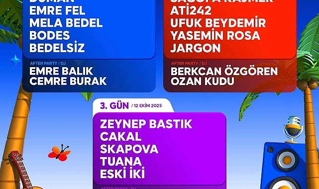 Üç gün boyunca aralıksız müzik, sürpriz etkinlikler ve enerjisi hiç düşmeyen after party’lerle dolu festival, Çanakkale’de sonbaharı ritimle karşılayacak. Ünlü sahne performanslarının yanı sıra genç yeteneklere de yer verilecek etkinlikte, katılımcıları unutulmaz bir festival deneyimi bekliyor.