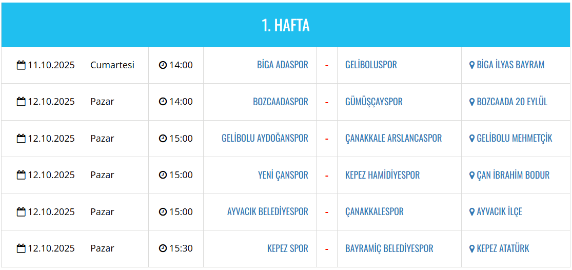 Çanakkale futbolunda heyecan dolu bir sezon için geri sayım sona eriyor. Süper Amatör Lig 2025-2026 sezonu, 11 Ekim Cumartesi günü saat 14.00’te oynanacak Biga Adaspor – Geliboluspor karşılaşmasıyla resmen başlayacak.