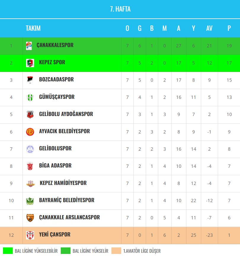Çanakkale Süper Amatör Lig'de 7. hafta maçları şu skorlarla tamamlandı: