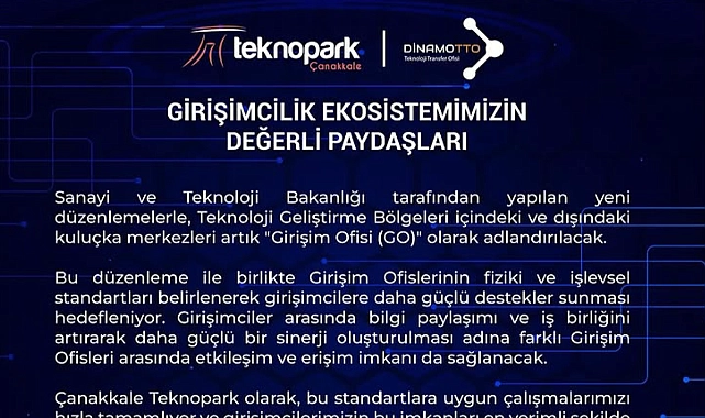 Bu yeni düzenleme ile birlikte, girişimcilere daha güçlü destekler sunulması ve bilgi paylaşımının artırılması hedefleniyor. Girişim Ofislerinin fiziki ve işlevsel standartları belirlenerek, girişimciler arasında iş birliği ve etkileşimin artırılması amaçlanıyor. Çanakkale Teknopark, bu yeni standartlara uygun çalışmaları hızla tamamlayarak girişimcilerine en verimli imkanları sunmayı planlıyor.