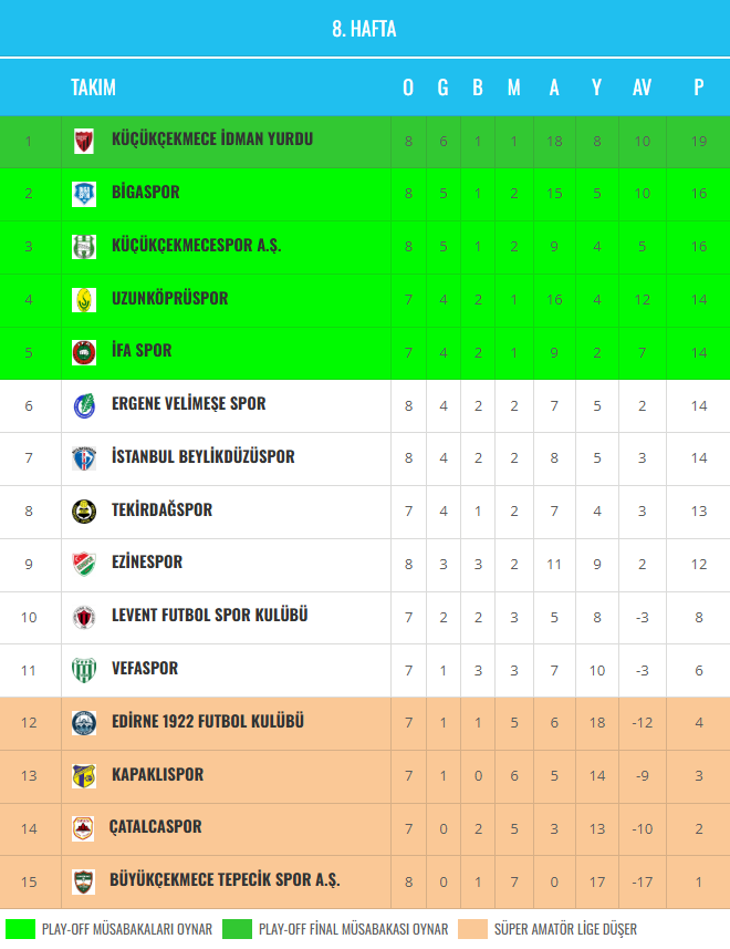 Ligin üst sıralarında yer alan ekiplerin aldığı skorlar, önümüzdeki haftalarda rekabetin daha da artacağının sinyallerini verdi. Lider Küçükçekmece İdman Yurdu, aldığı farklı galibiyetle avantajını korurken Bigaspor’un bu hafta puan kaybetmesi zirve mücadelesini hareketlendirdi.