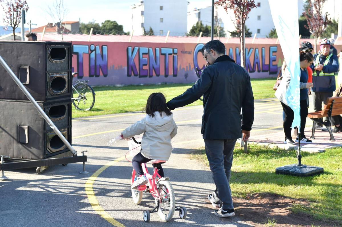 Bu alan, son iki yılda yeni yaptığımız altı parktan biri. Kent merkezimize altı yeni park kazandırdık ve 19 parkımızı da yeniledik. Amacımız Çanakkale'de kişi başına düşen yeşil alan miktarını her geçen gün daha da yükseltmek. Bu alanın hemen bitişiğindeki arazi, Hüseyin Akif Terzioğlu Vakfına ait. O arazinin tahsisini de talep ettik vakıftan. Artık o arazinin de bu bisiklet parkına katılması lazım. Orada özel bir pist oluşturularak çok önemli çalışmalar yapılabilir.