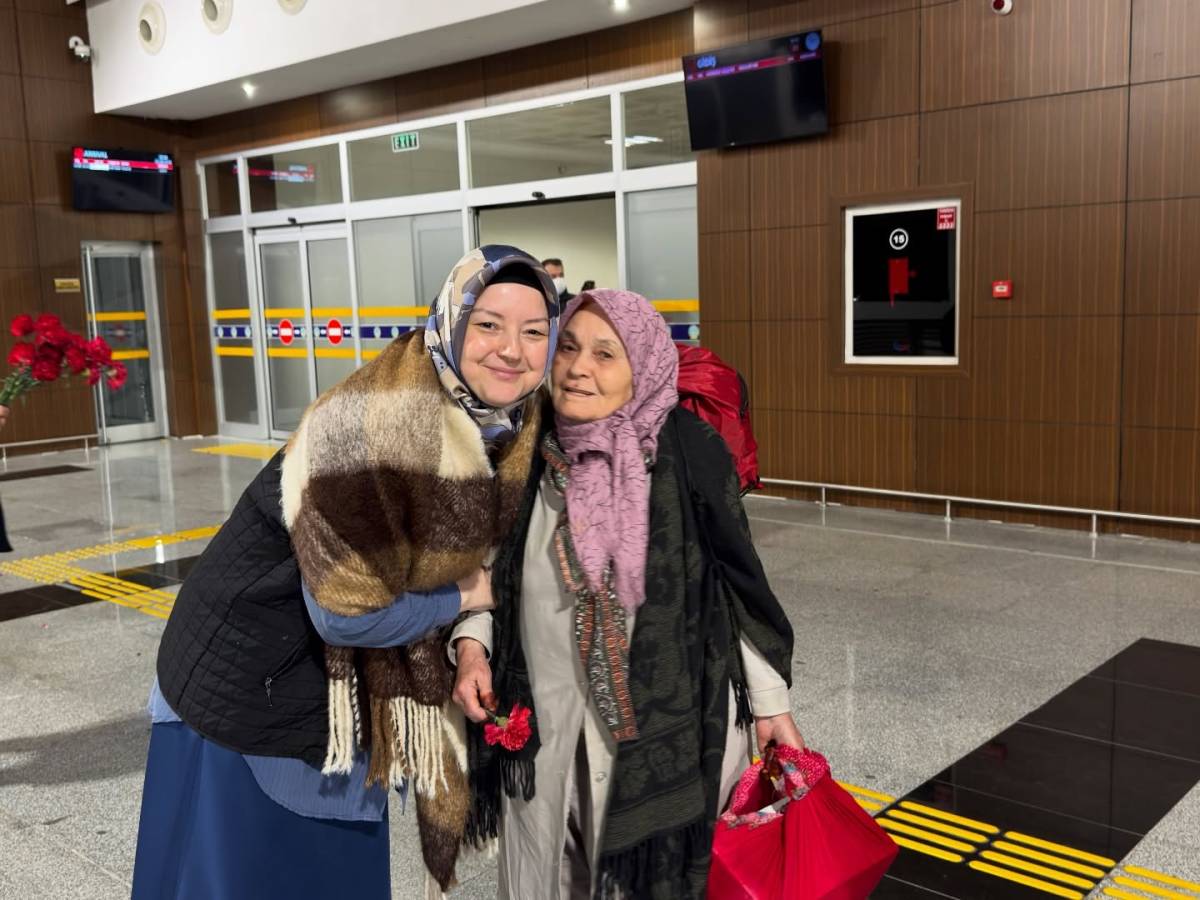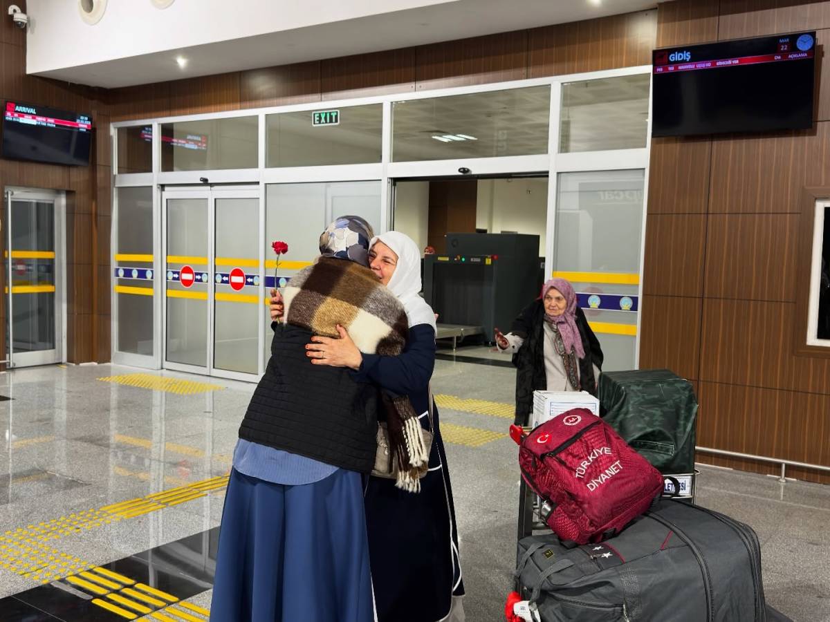 Umre ibadetini tamamlayan vatandaşların dönüşü, hem kendileri hem de aileleri için unutulmaz bir buluşmaya sahne oldu. Hasretin sona erdiği anlarda mutluluk ve gözyaşı bir arada yaşandı.
