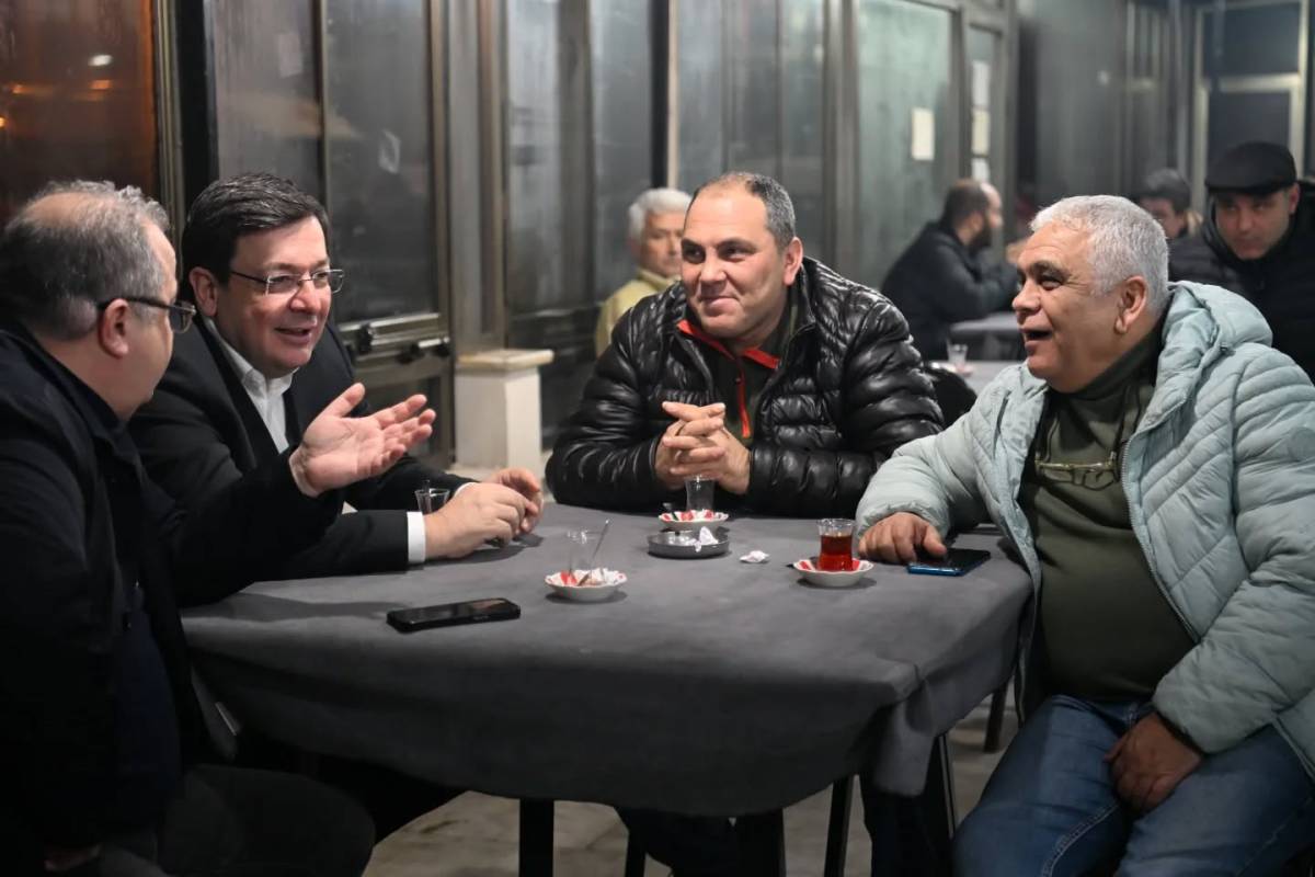 Havaalanı bölgesindeki kahvehanelerde vatandaşlarla çay içip sohbet eden heyet, halkın taleplerini ve şikayetlerini dinledi. Özellikle son dönemde artan hayat pahalılığı ve geçim sıkıntısı vatandaşların ana gündem maddesi olurken, Belediye Başkanı Muharrem Erkek bölgeye yönelik planlanan çalışmalar hakkında bilgiler verdi.