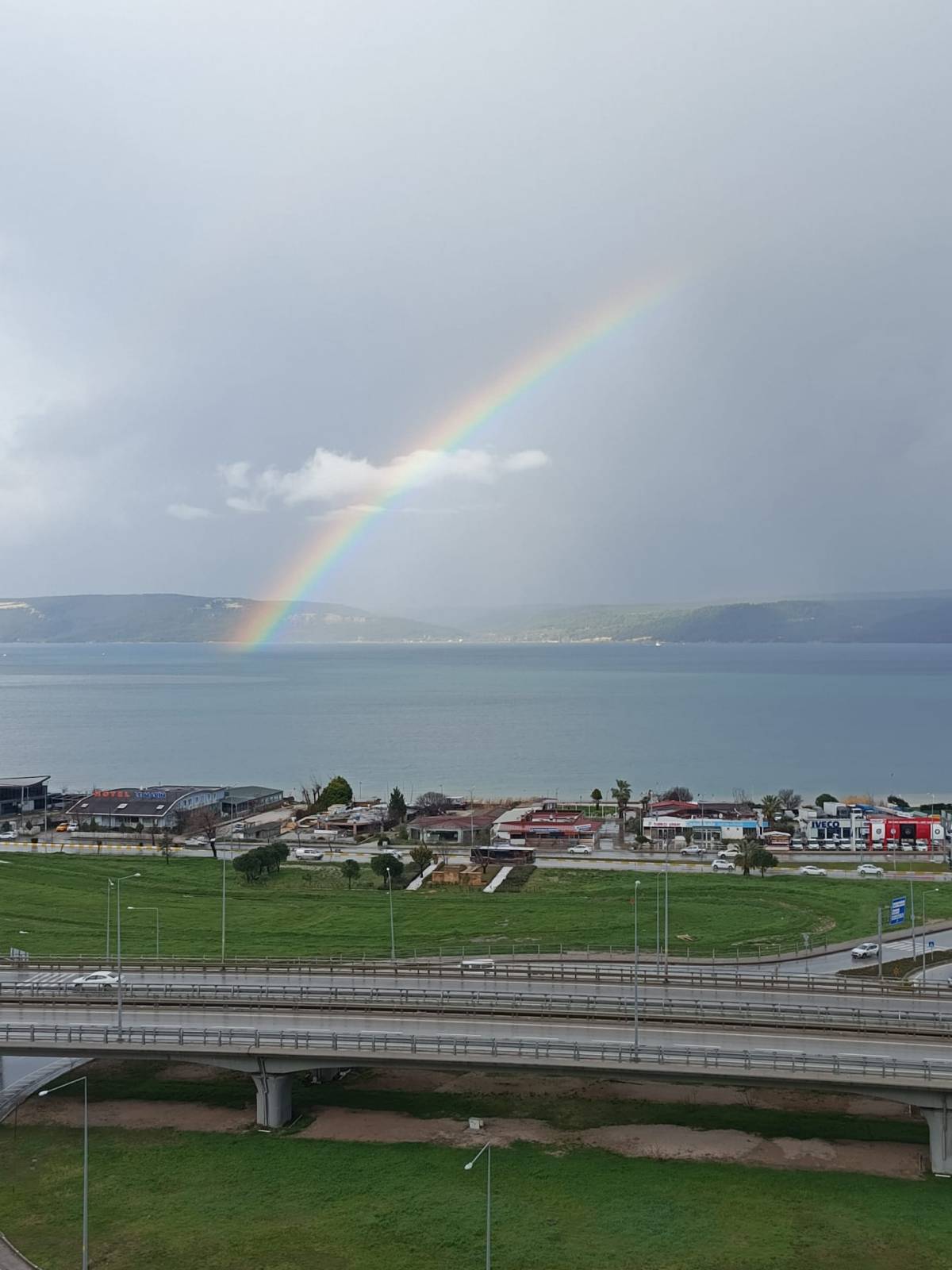 Sabah saatlerinde etkili olan yağışın ardından güneşin yüzünü göstermesiyle birlikte kentte dikkat çeken bir doğa olayı yaşandı. Kent merkezine hâkim noktalardan net şekilde görülen devasa gökkuşağı, özellikle boğaz hattı boyunca seyreden vatandaşların ilgisini çekti. Yağmur bulutlarının dağılmasıyla birlikte ortaya çıkan renkli görüntü, kısa sürede sosyal medyada da paylaşıldı.