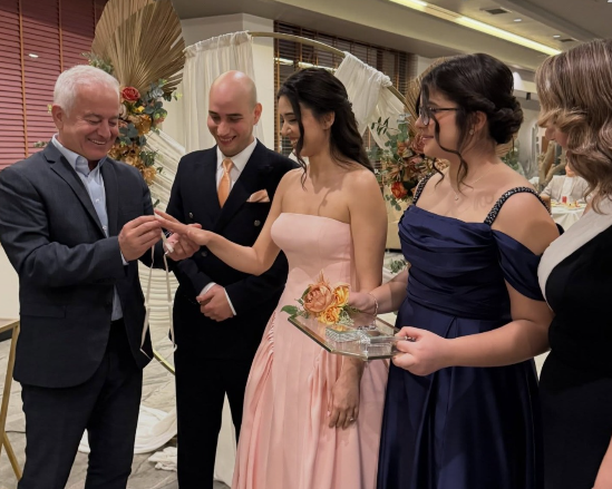 Nişan töreni boyunca genç çift ve aileleri davetlilerle yakından ilgilenirken, gece boyunca mutluluk ve heyecan ön plandaydı. Katılımcılar, çiftin uyumuna ve mutluluğuna dikkat çekti.