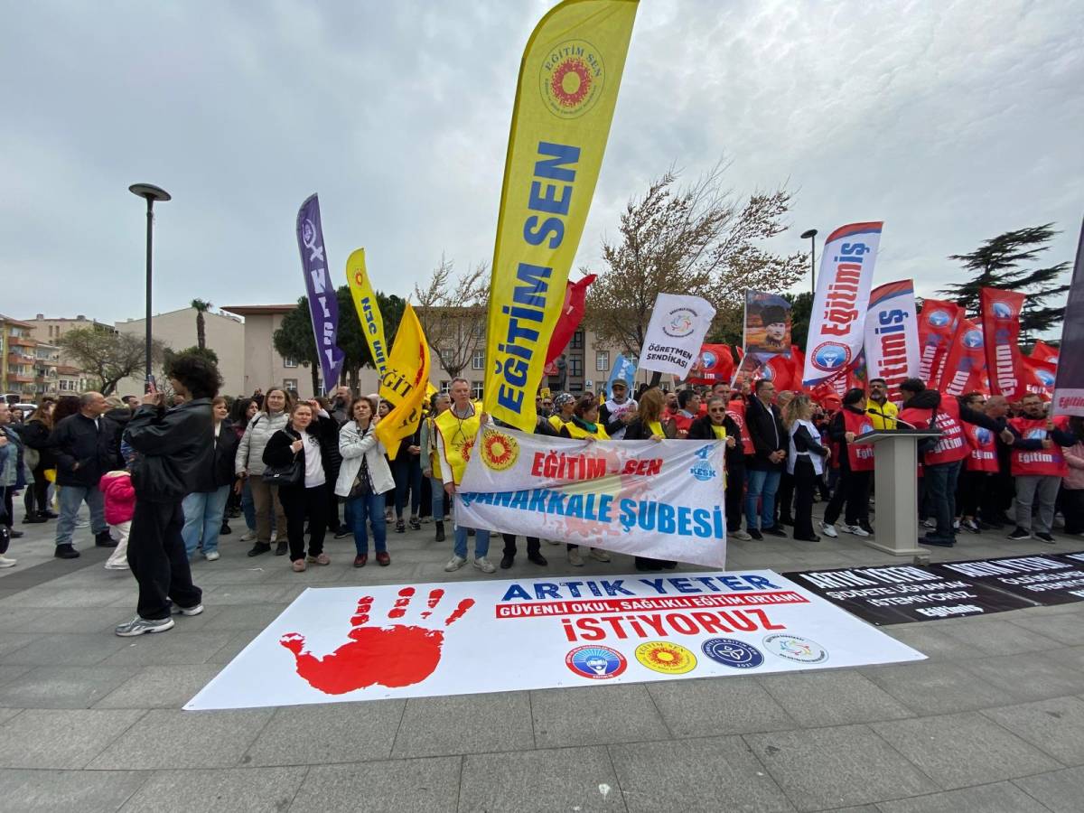 Şanlıurfa Siverek Ahmet Koyuncu Mesleki ve Teknik Anadolu Lisesi’nde eski bir öğrencinin rastgele ateş açması sonucu 10 öğrenci, 4 öğretmen, 1 polis memuru ve 1 kantin işletmecisinin yaralanması, eğitim camiasını ayağa kaldırdı. Çanakkale’de faaliyet gösteren Eğitim-İş, Eğitim Sen ve Hürriyetçi Eğitim Sen üyeleri, yaşanan vahşete tepki göstermek amacıyla bugün saat 13.00’te Truva Atı önünde bir araya gelerek ortak basın açıklaması düzenledi.