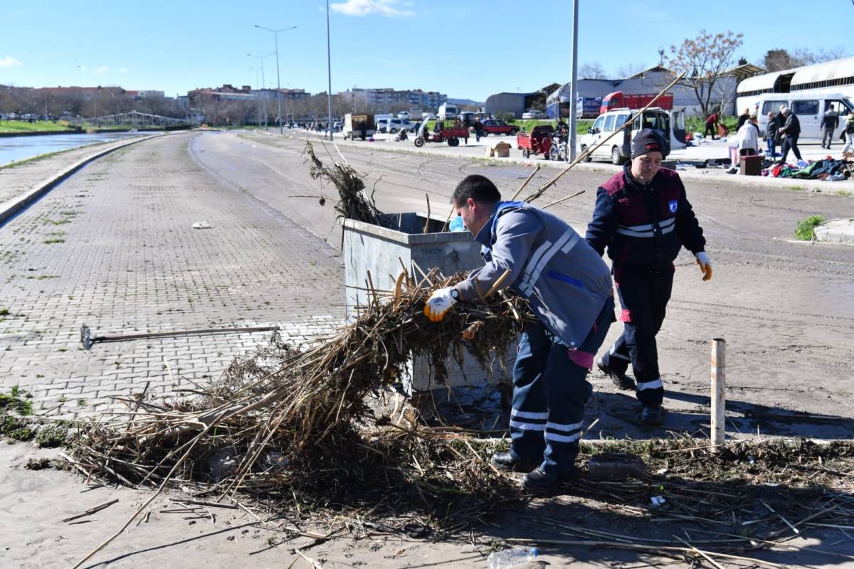 Temizlik İşleri, Su ve Kanalizasyon ile Fen İşleri Müdürlüğü ekiplerinin ortak yürüttüğü çalışmalar doğrultusunda, özellikle sahil kesimlerinde ve Sarıçay kenarında biriken yosunlar ile rüzgarın taşıdığı atıklar tek tek toplandı. Temizlik araçları ve personelin yoğun mesai harcadığı çalışmalarda, fırtınadan etkilenen alanlar eski düzenine kavuşturuldu.