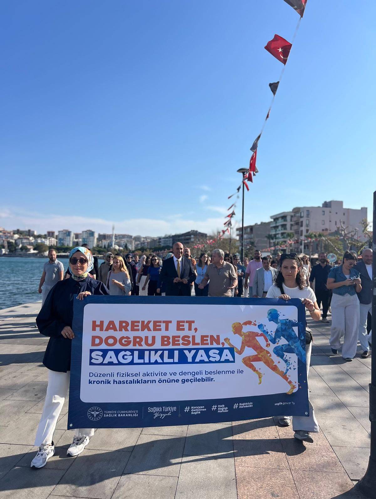 Kordon Boyu’nda düzenlenen etkinliğe, Vali Yardımcısı Aydın Abak, İl Sağlık Müdürü Dr. Hakan Görgülü, Halk Sağlığı Hizmetleri Başkanı Uzm. Dr. Aslı Okan, Destek Hizmetleri Başkanı Uzm. Dr. Yavuz Adanur, Kamu Hastaneleri Hizmetleri Başkanı Op. Dr. Halil Gürkan Çoban, Sağlık Hizmetleri Başkanı Uzm. Dr. Huriye Ünal, başkan yardımcıları, birim sorumluları ve çok sayıda sağlık personeli katıldı. Katılımcılar, sağlıklı yaşam için farkındalık oluşturmayı amaçlayan yürüyüşte, vatandaşlara örnek oldu.