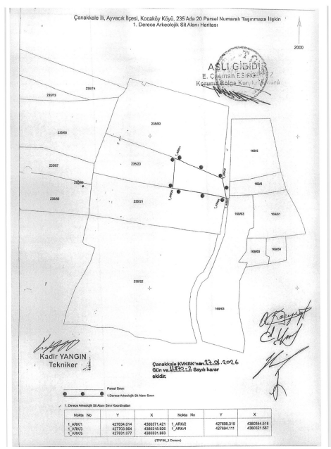 Alınan kararla birlikte, sit alanının sınırlarını gösteren 1/2000 ölçekli koordinatlı harita ve tescil fişi de uygun bulundu. Bu kapsamda ilgili tapu müdürlüğüne, söz konusu parselin tapu kütüğünün beyanlar hanesine “Bir kısmı I. Derece Arkeolojik Sitte kalmaktadır.” şeklinde kayıt düşülmesi yönünde talimat verildi.