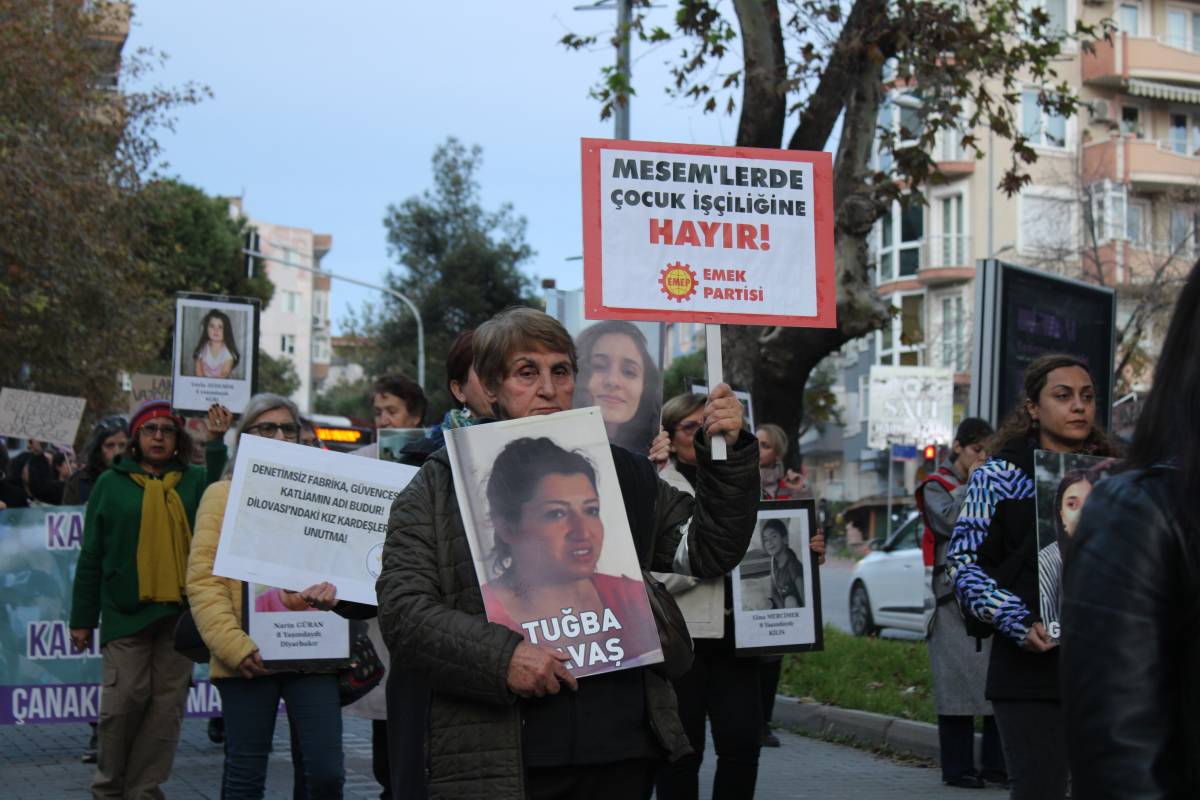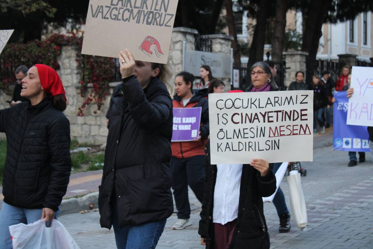 Dilovası’nda 8 Kasım’da yaşanan patlamada hayatını kaybeden 6 kadın işçiyi hatırlatan platform, güvencesiz ve denetimsiz çalışma koşullarının kadınları ölümle yüz yüze bıraktığını ifade etti. Çocuk işçiliğine vurgu yapılırken, “Eşit, özgür ve güvenli yaşam” talebi yinelendi.