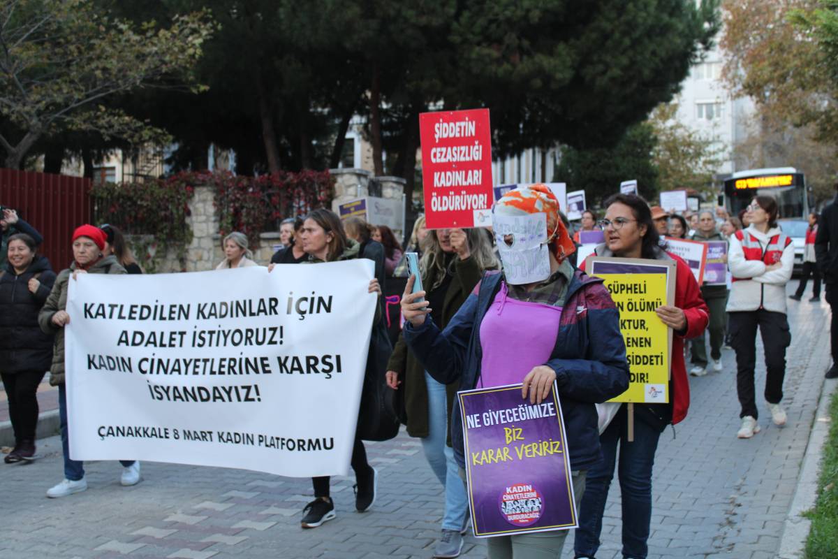 Kadına Yönelik Şiddete Karşı Uluslararası Mücadele Günü kapsamında bugün tüm Türkiye’de olduğu gibi Çanakkale’de de kadınlar meydanlara çıktı. Çanakkale 8 Mart Kadın Platformu’nun çağrısıyla bir araya gelen kadınlar, Salı Pazarı’ndan başlayarak İskele Meydanı’ndaki Manolya Ağacı’na kadar sloganlar eşliğinde yürüdü. Yürüyüşün ardından Manolya Ağacı önünde geniş bir kalabalık toplandı ve platform tarafından hazırlanan basın açıklaması okundu.