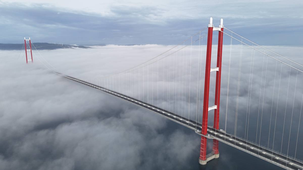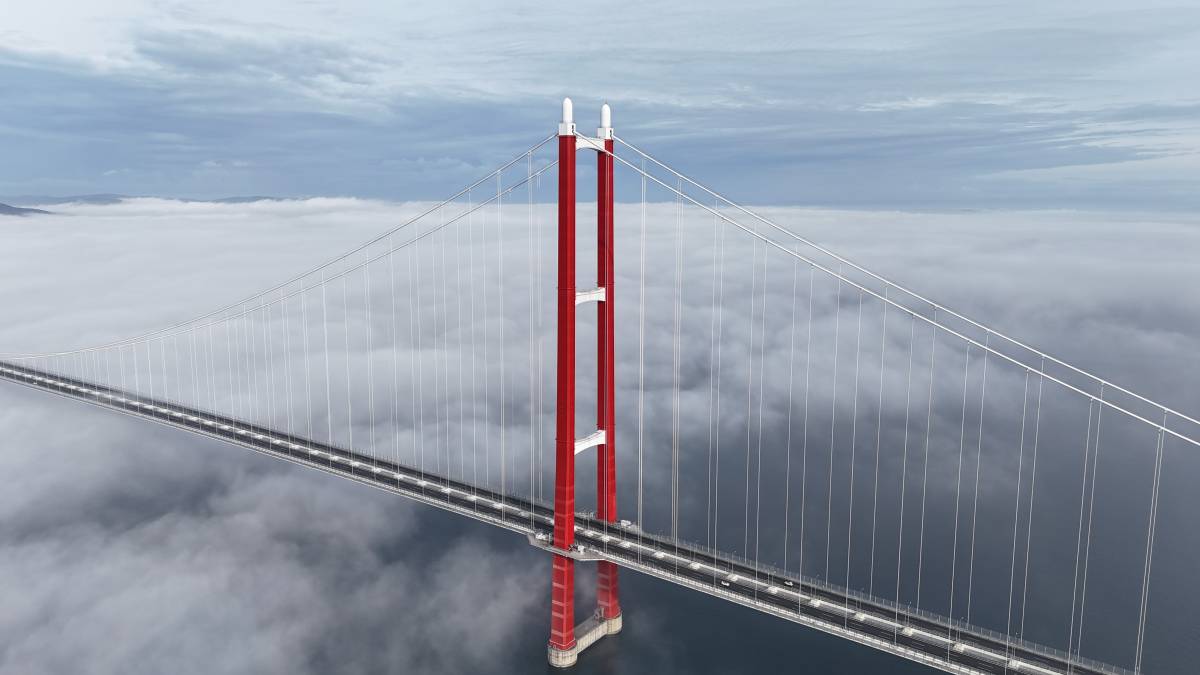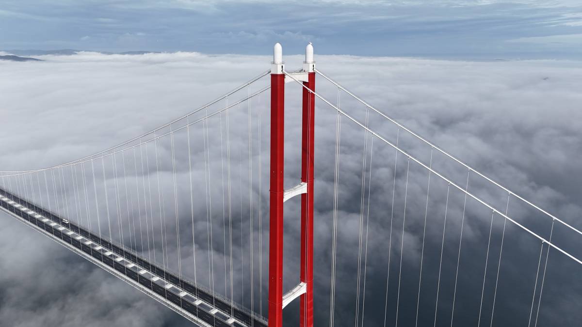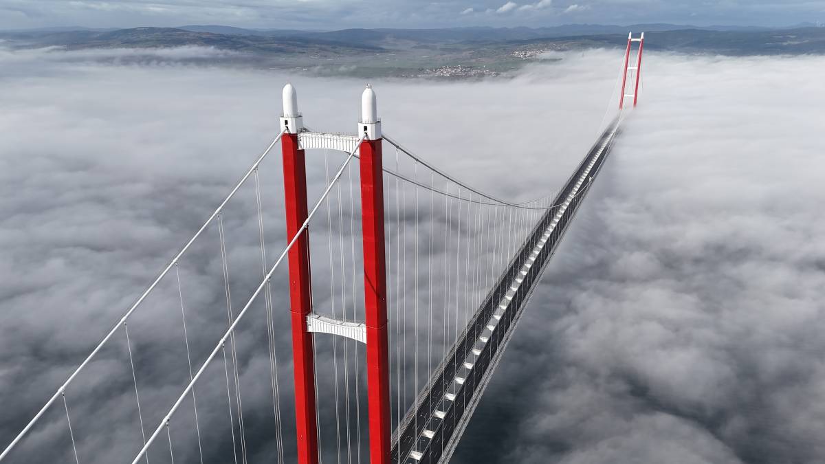 1915 Çanakkale Köprüsü, 2023 metre orta açıklığıyla dünyanın en uzun orta açıklığa sahip asma köprüsü olarak öne çıkıyor. Çanakkale Boğazı’nın iki yakasını birbirine bağlayan köprü, hem ulaşım hem de mühendislik açısından önemli bir yapı olarak değerlendiriliyor. Sisli hava koşullarında dahi köprünün ihtişamı, dron görüntüleriyle bir kez daha gözler önüne serildi.