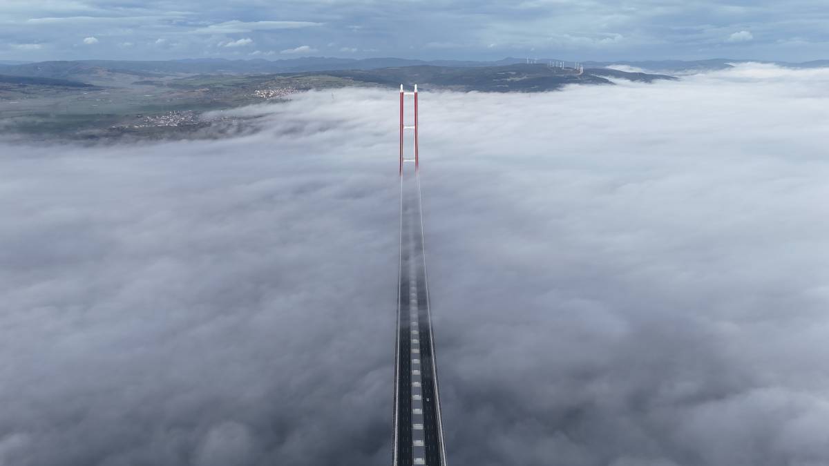 Çanakkale Boğazı’nda etkili olan sis, kentin simge yapılarından biri olan 1915 Çanakkale Köprüsü üzerinde de etkili oldu. 2023 metre orta açıklığıyla dünyanın en uzun orta açıklığa sahip asma köprüsü olma özelliğini taşıyan 1915 Çanakkale Köprüsü’nün sis bulutu altındaki görüntüsü dron ile kaydedildi. Sis tabakasının köprü ayakları ve tabliyesi etrafında oluşturduğu manzara dikkat çekti.