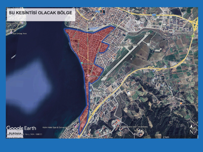 Çanakkale Belediyesi, Barbaros Mahallesi’ni besleyen ana isale hattında meydana gelen ani arıza nedeniyle bölgede geçici su kesintisi yaşanacağını duyurdu.