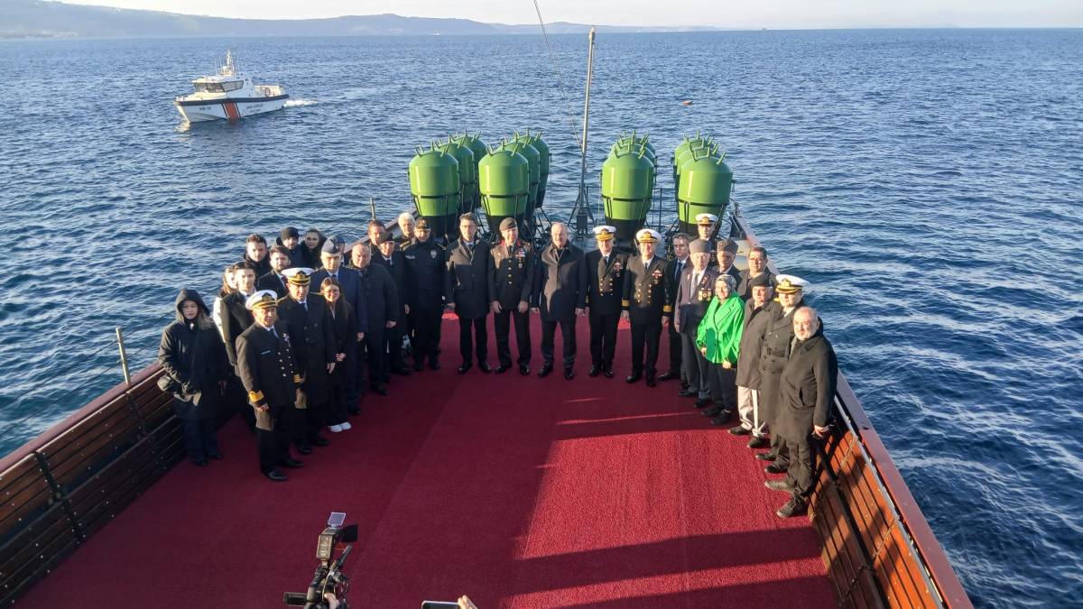 Seyir faaliyeti kapsamında gerçekleştirilen törende, Çanakkale Deniz Savaşları’nda hayatını kaybeden şehitler de anıldı. Tören sırasında denize çelenk bırakılarak şehitlerin hatırası yaşatıldı.