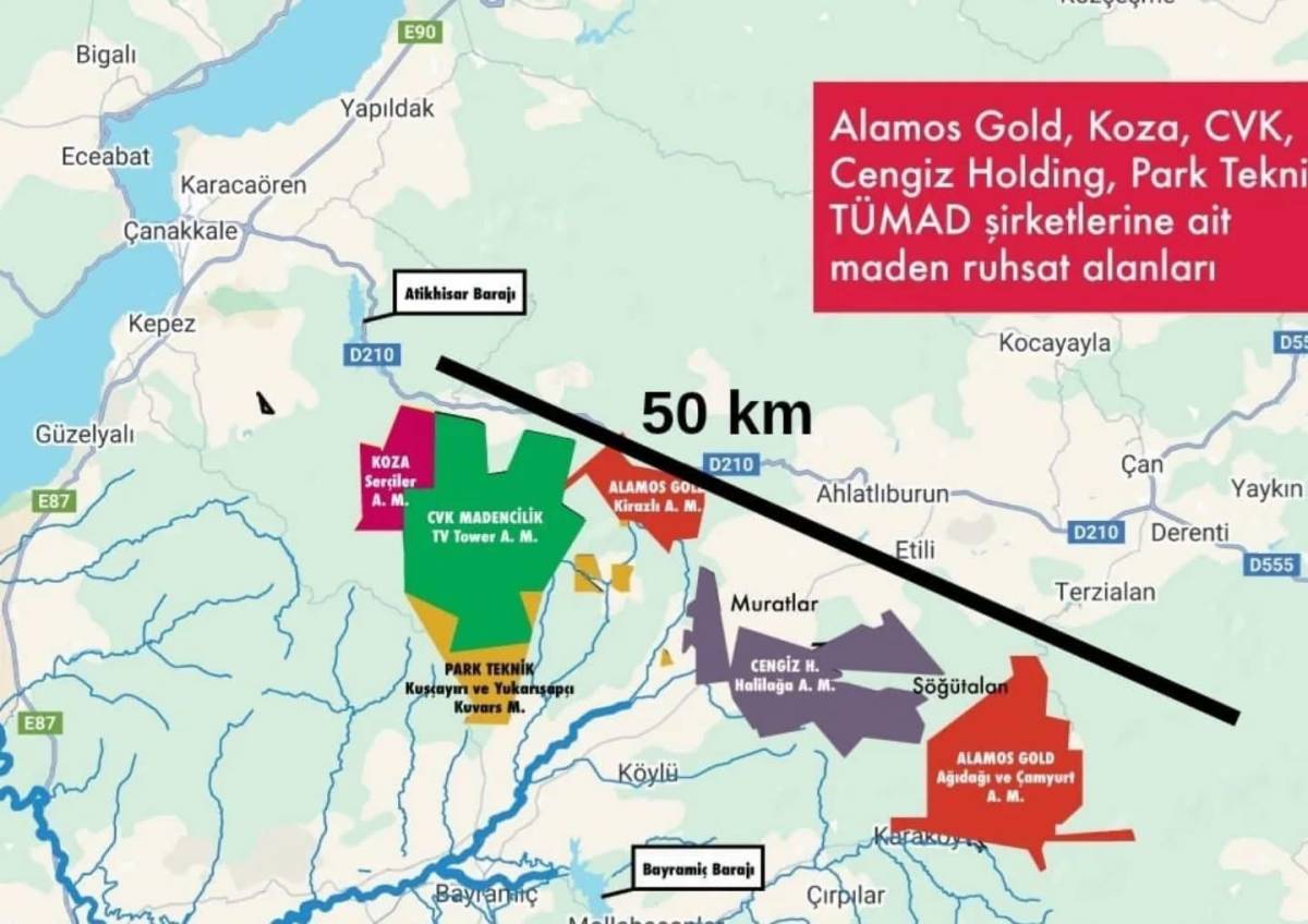 Geçtiğimiz aylarda CVK Madencilik, TV Tower Projesi’nin sahibi olan Orta Truva Madencilik’in hisselerinin tamamını Pilot Investment Inc. ve Teck Madencilik’ten 11,5 milyon USD karşılığında satın aldığını duyurmuştu. Söz konusu proje sahasında yapılan kaynak tahmin raporlarına göre, yaklaşık 10,88 milyar Amerikan Doları değerinde altın, gümüş ve bakır rezervi bulunduğu belirtiliyor. Projenin ruhsat alanı 8.625 hektarı bulurken, ÇED başvuru dosyasında yer alan işletme alanı ise 3.878 hektar gibi korkutucu bir büyüklüğe ulaşıyor.