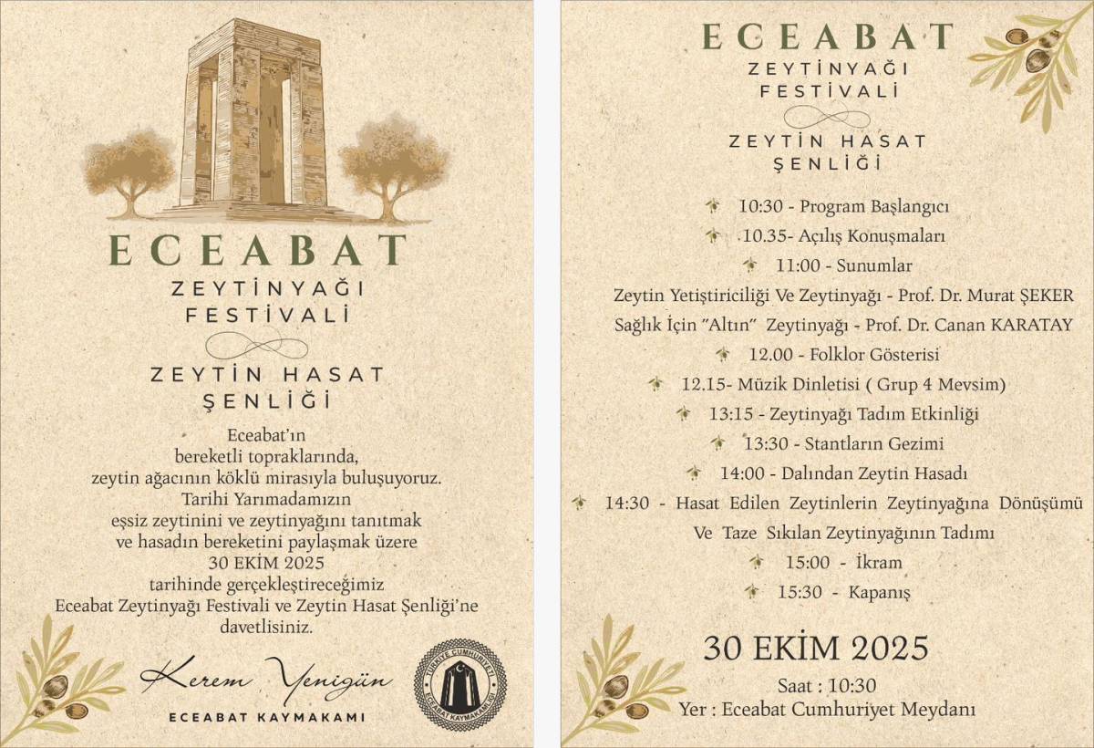 Çanakkale’nin bereketli topraklarıyla ünlü ilçesi Eceabat, bu yıl zeytin sezonuna coşku dolu bir festivalle merhaba demeye hazırlanıyor.