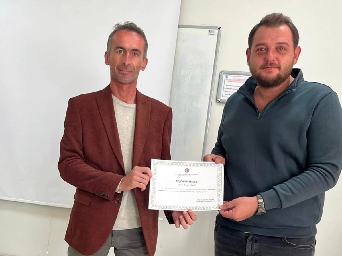 Ziyarete ÇARO Yönetim Kurulu Başkanı Ercan Yavuz ve Başkan Yardımcısı Cihan Müşterioğlu katıldı. Program kapsamında, Turizm Rehberliği bölümü öğrencileriyle “Turist Rehberliği Mesleğinin Dünü, Bugünü ve Yarını” başlıklı verimli bir söyleşi gerçekleştirildi.