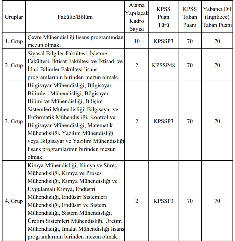 Her grup için KPSS taban puanı 70, YDS (İngilizce) taban puanı ise 70 olarak belirlendi.