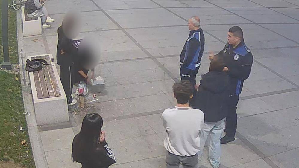 İzleme ve Değerlendirme Merkezindeki ekipler tarafından merkez park heykel önünde bir grup gencin çekirdek ve yanında farklı yiyecekler yedikleri, çekirdek kabuklarını yere atıp, diğer yiyeceklerin çöplerini de ortada bıraktıkları tespit edildi. Alanda oluşan ciddi seviyedeki kirliliğe zabıta ekipleri anında müdahale etti. Zabıta personeli çevre kirliliğine sebebiyet veren gençleri tespit etti. Oluşan çevre kirliliğini gidermek için gençlere süpürge ve kürek verilerek kirlettikleri yer temizletildi. Yere atılan çöpler toplatıldı. Ardından çevre kirliliğine sebebiyet veren kişilere kabahatler kanunu kapsamında idari para cezası da uygulandı. Ayrıca yapılan davranışın doğru olmadığı hatırlatılarak, çevre temizliği konusunda daha hassas olmaları uyarısı yapıldı.
