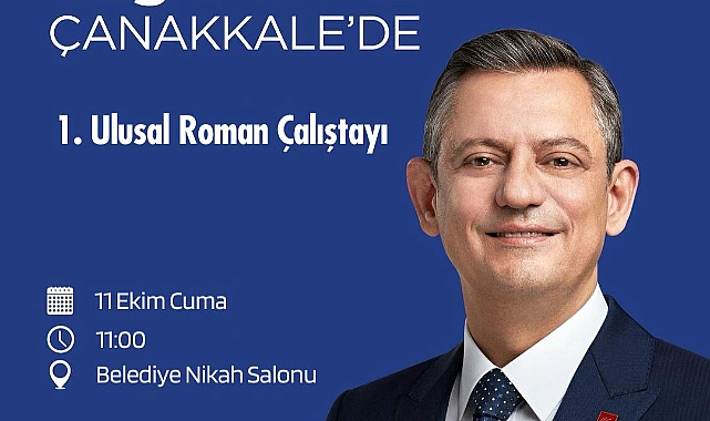 CHP lideri Özgür Özel, Halk Buluşmaları kapsamında 10 Ekim Perşembe günü Çanakkale’ye geliyor. Özgür Özel, 21 belediye başkanının katılımı ile gerçekleşecek olan program öncesi saat 11.00’de 1. Ulusal Roman Çalıştayı'na katılım gösterecek.