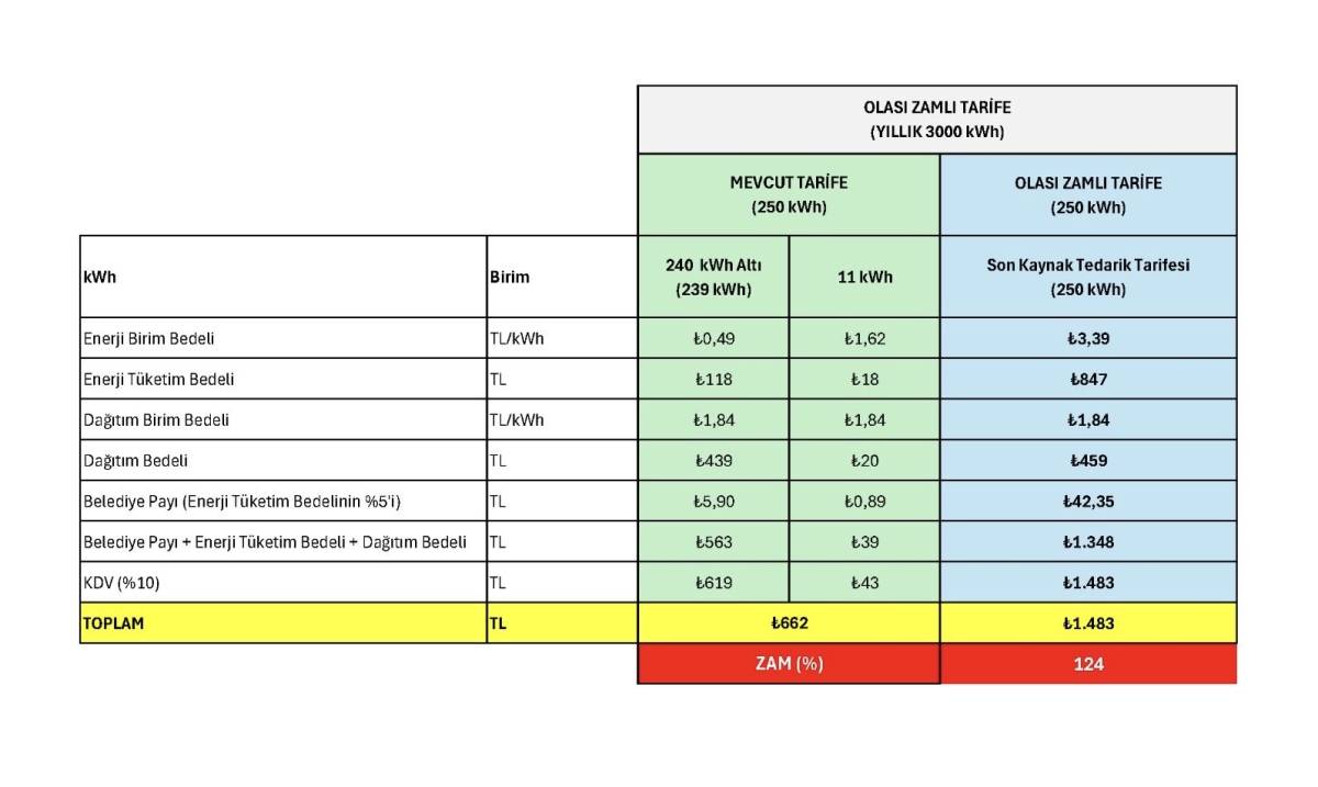 1.128 TL’lik fatura: 2.462 TL’ye çıkacak.