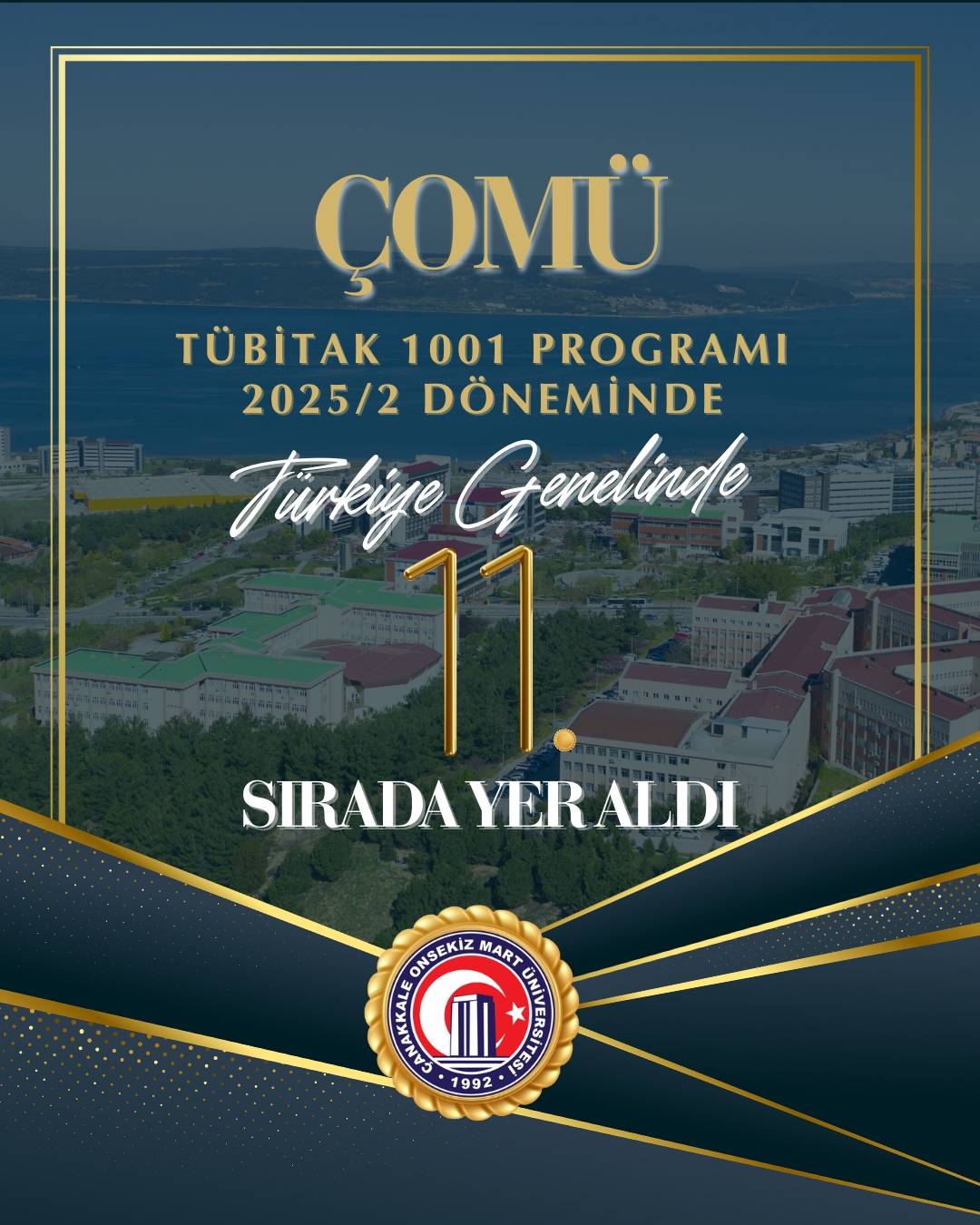 2025/2 döneminde TÜBİTAK 1001 Programı kapsamında destek almaya hak kazanan projeler dikkate alındığında, ÇOMÜ 208 üniversite arasında Türkiye genelinde 11. sırada yer aldı. Elde edilen bu sonuç, üniversitenin bilimsel üretim kapasitesini ve araştırma odaklı vizyonunu ortaya koyan önemli bir gösterge olarak değerlendirildi.