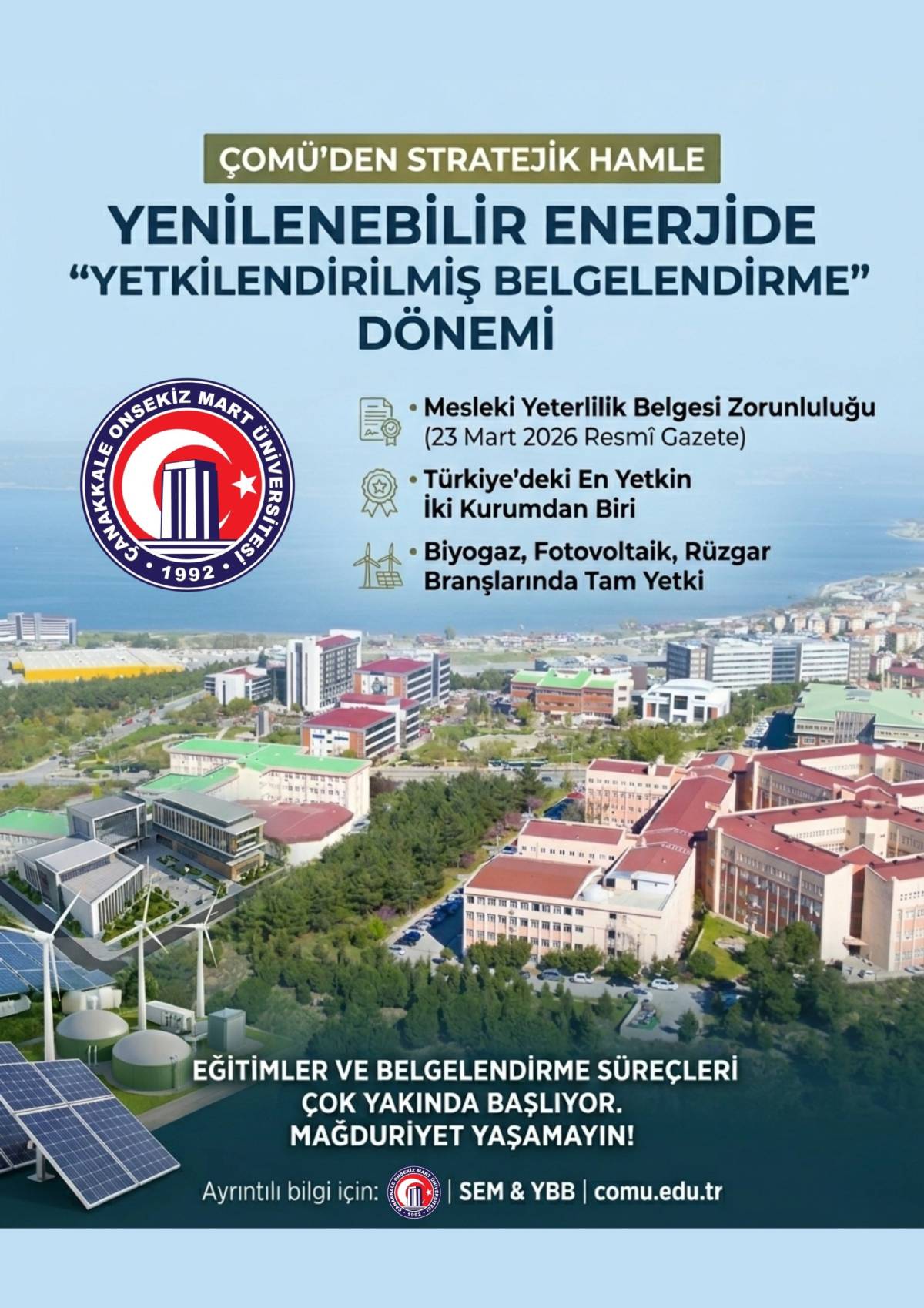 Sanayi ve enerji sektörünün ihtiyaç duyduğu nitelikli iş gücünün yetiştirilmesi ve mevcut çalışanların belgelendirilmesi sürecinde ÇOMÜ’nün önemli bir merkez haline gelmesi bekleniyor. Özellikle yenilenebilir enerji alanında sağlanacak eğitim ve belgelendirme hizmetleri, sektörde yeni bir dönemin kapısını aralıyor.